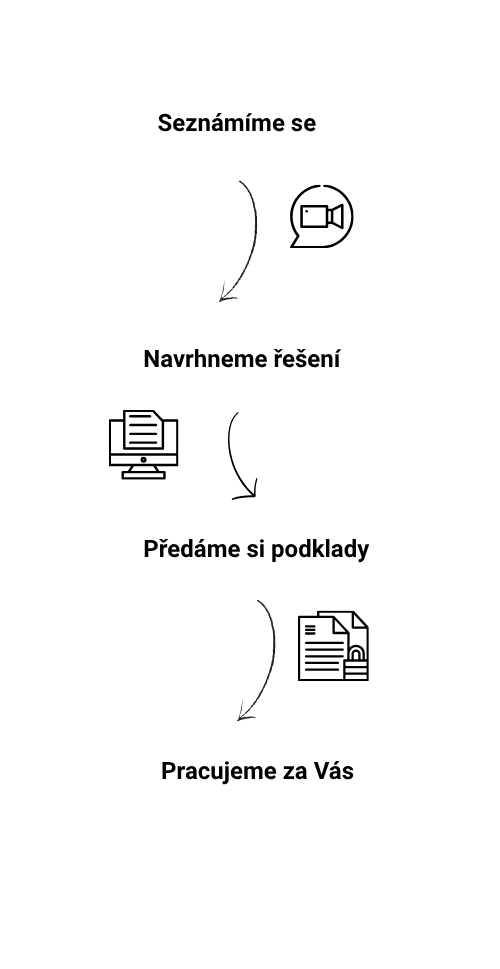 Po odsouhlasení spolupráce si předáme potřebné materiály: účetní doklady, přístup k e-mailům, fakturačnímu systému nebo sdíleným složkám. Vše bezpečně a diskrétně.